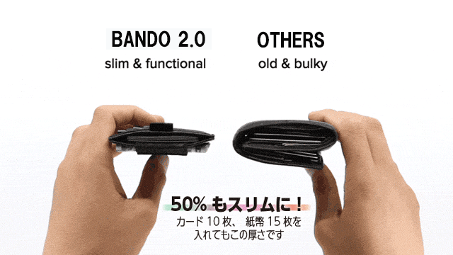 必要なモノだけを最小限に収納、スリムでかさばらない、シンプルで使いやすいBANDO2.0は今の時代に最適な財布です。