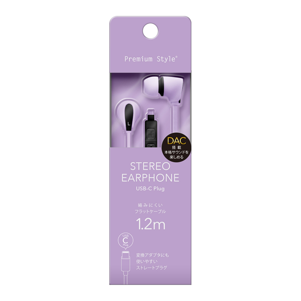 カラフルデザインで使いやすさを重視して設計された、USB Type-Cコネクタ ステレオイヤホンです。イヤホン部はフィット感に優れたカナルタイプを採用し、遮音性が高く音漏れしにくい仕様となっています。また、ケーブル部分にはマイク付きリモコンを搭載。ハンズフリー通話や音量調整、再生・停止などの操作が行えます。かさばらずスリムなストレートプラグ・絡みにくいフラットコードを採用しています。音声信号をデジタルからアナログに変換するDAC (Digital to Analog Converter)を搭載し音声再生時のノイズやゆがみを低減し、高音質のまま音楽を楽しむことができます。シリコン製のイヤーピースがS、M、Lの3ペア付きで耳にフィットするサイズをご使用頂けます。