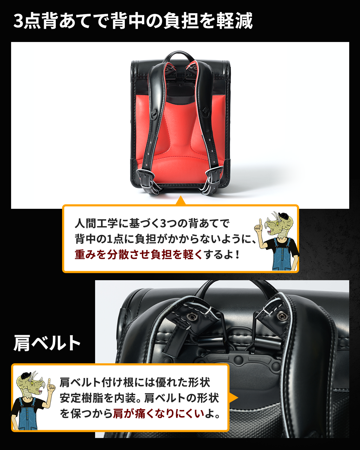 (時代を築いた強者たち。) 恐竜が生きた三畳紀・ジュラ紀・白亜紀 それぞの時代の頂点の捕食者を表現したストロング恐竜ランドセル!!誕生しました。