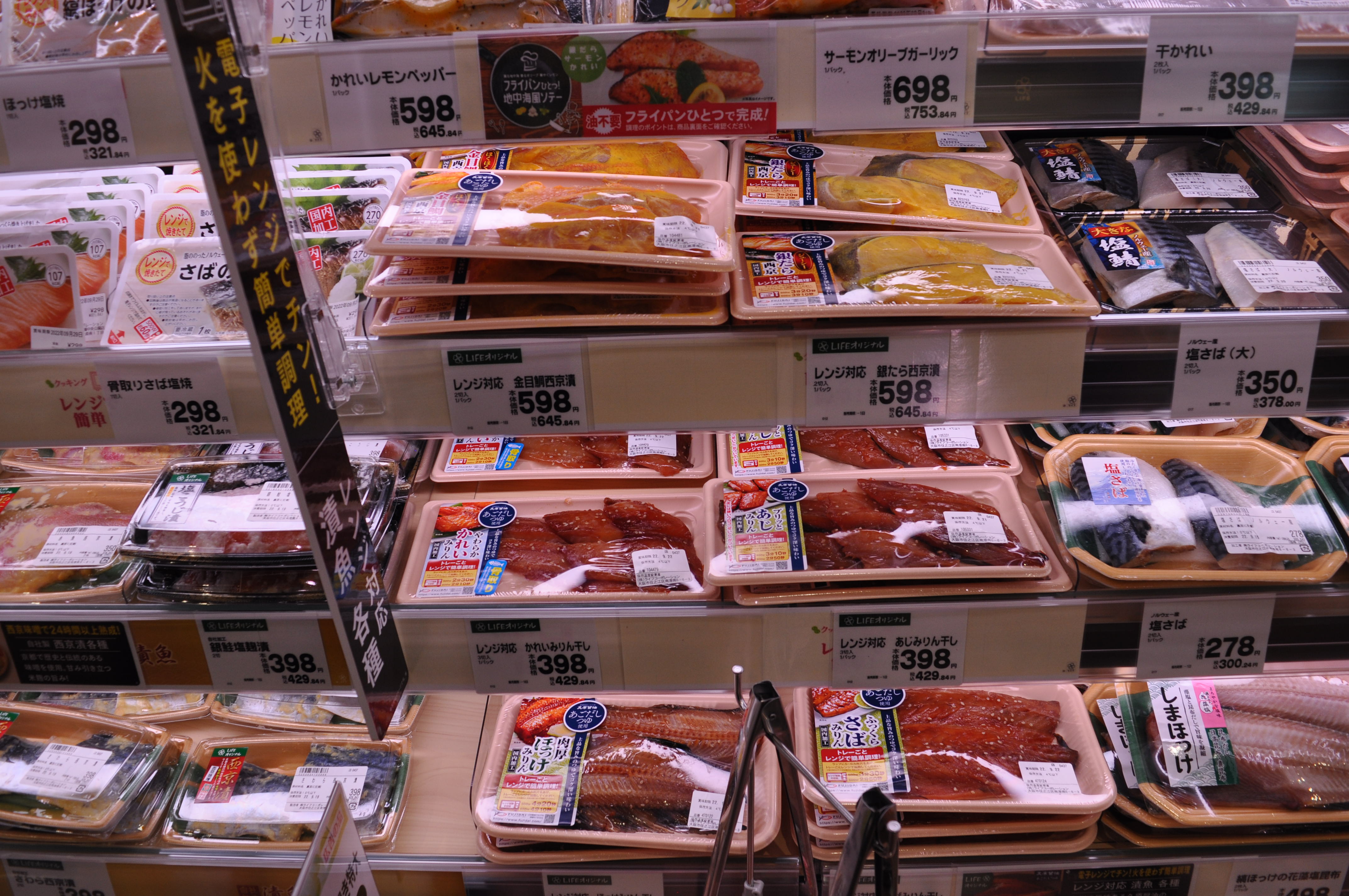 店舗周辺はお仕事や家事、育児で忙しい共働き世帯が多いため、簡単調理でおいしく出来上がる冷凍食品や、ライフ自慢のお惣菜・手作りパンを種類豊富に品ぞろえいたします。惣菜コーナーに加えて、生鮮食品コーナーからもサラダや焼き魚など、素材のおいしさを活かしたお惣菜をご提供いたします。