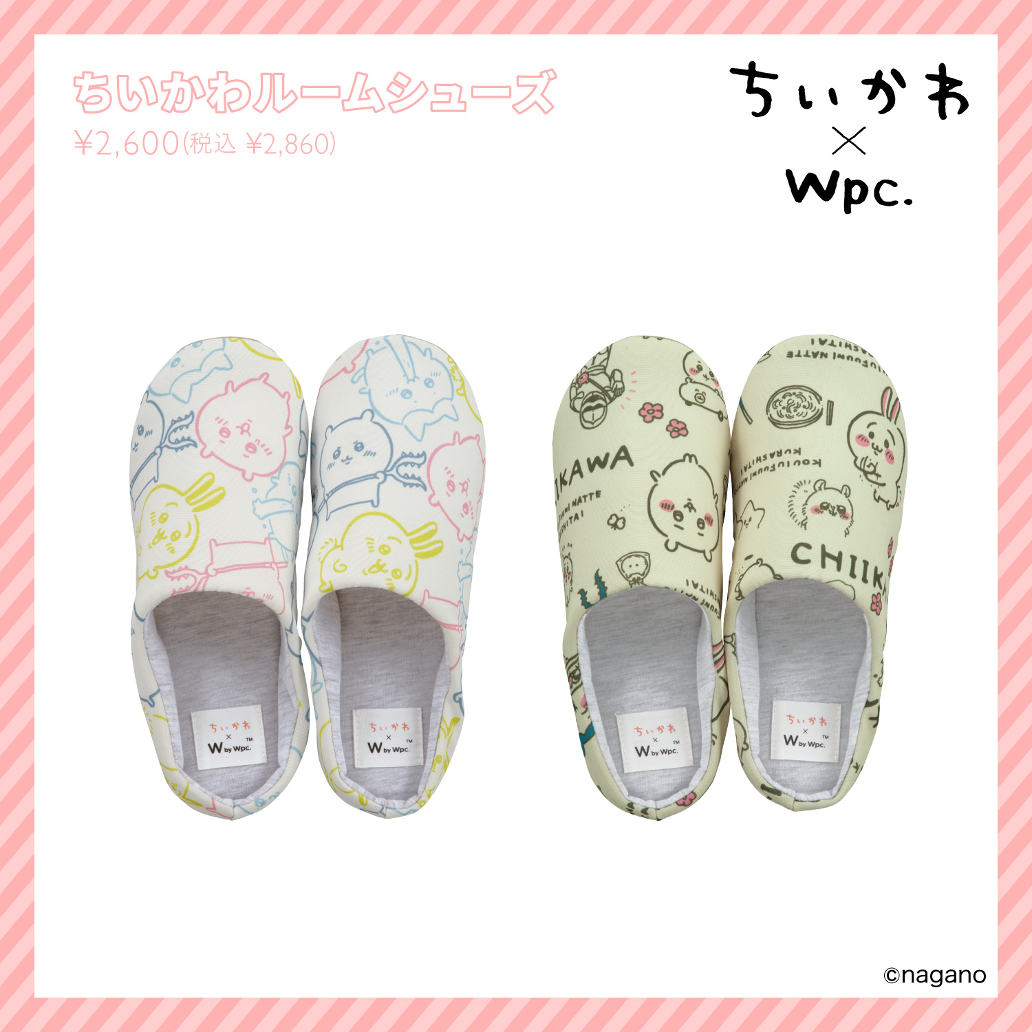 そんな何事にも一生懸命で可愛いちいかわ、ハチワレ、うさぎたちがビニール傘やルームシューズなどWpc.のアイテムになって登場!雨の日だって、おうちにいるときだって、ちいかわと一緒になんか楽しく過ごそう♪
