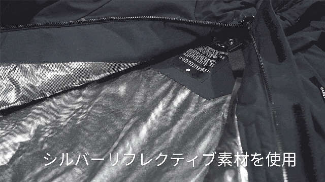 内側には熱反射布地であるシルバーハニカム・リフレクティブ素材を使用。放熱シートからの熱や体温、周囲の熱を反射することによって、衣服内に熱循環を形成し、熱を逃すことなくぬくもりをいつまでもキープします。
